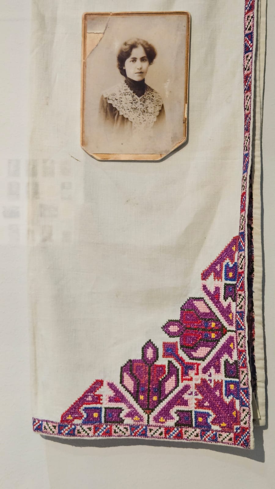 This is a cross-stitch pattern for an embroidery made by Zabel Yesayan on display at the the State Museum of Literature and Art after Yeghishe Charents in Yerevan, Armenia.